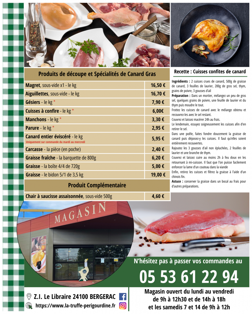 Magasin ouvert du lundi au vendredi de 9h à 12h30 et de 14h à 18h. Et exceptionnellement les samedis 7 et 14 de 9h à 12h.